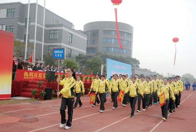 隨著高亢激昂的音樂響起,國旗隊、廠旗隊、軍樂隊、旗手、紅旗隊、鮮花隊及10個運動員代表方隊邁著整齊劃一的隊形,喊著競賽口號,大踏步有序經過主席臺,展現出東華人朝氣蓬勃的青春活力和誠信、務實、創新、求更好的企業精神。