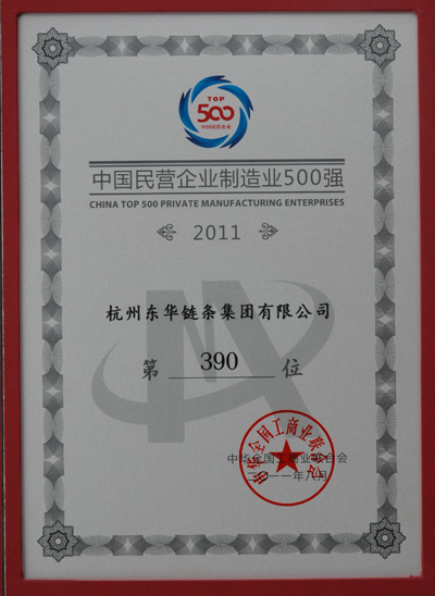 東華集團是國內鏈條行業唯一一家進入2011中國民營企業制造業500強的企業,突顯出東華集團在國內鏈條行業的龍頭地位。對20年如一日走國際化路線的東華集團而言,大力開拓全球市場、打造國際自主品牌、加強企業內部建設及持續穩定增長的經營效率和效益,以及對國內外營銷網絡資源的出色利用,都成為東華上榜的優勢要素。