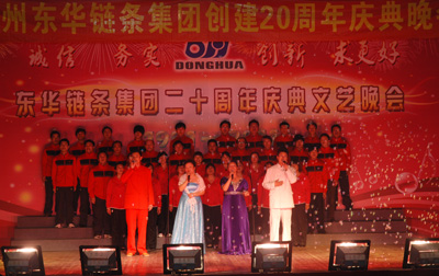 東華創(chuàng)建20年來(lái),我們從成長(zhǎng)走向成熟;從快速走向穩(wěn)健;從規(guī)模走向效益;從國(guó)內(nèi)走向國(guó)際,走向國(guó)際的時(shí)候,我們東華提出了新的目標(biāo),在全球我們要成為鏈傳動(dòng)第一的鏈條制造企業(yè)。我們?cè)瓉?lái)的定位是專業(yè)的、國(guó)際的、全球的第一,現(xiàn)在我們賦予第一新的定義,我想這個(gè)第一指的是我們的企業(yè)在全球同行業(yè)中最優(yōu)秀;產(chǎn)品在全球同行業(yè)中最有價(jià)值;員工在全球同行中最勤勞而有智慧;我們的品牌在全球同行中最誠(chéng)信可靠。在這個(gè)過(guò)程中,我們東華人首先是健康又蓬勃的,其次是活潑而又和諧的,再加上勤勞而智慧的,我相信,我們東華人共同努力,肯定能達(dá)到這樣的目標(biāo),而且能實(shí)現(xiàn)這樣的目標(biāo)。今天,我們歡聚在這里,要感謝余杭區(qū)文化館的同志們給我們的支持以及運(yùn)河鎮(zhèn)文體活動(dòng)中心給我們的支持。在此,祝晚會(huì)取得圓滿成功,同時(shí)祝演出人員取得演出成功,祝在座所有觀摩的東華員工有個(gè)好心情。