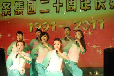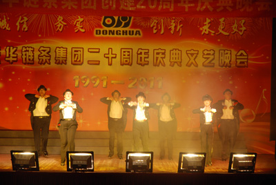 整場(chǎng)慶典晚會(huì)由18個(gè)文藝節(jié)目組成,其中16個(gè)節(jié)目由東華員工自編、自演,這些節(jié)目包括歌舞、小品、雜技、啞劇等等,節(jié)目集思想性、藝術(shù)性和觀賞性為一體。員工們以優(yōu)美的歌聲、輕盈的舞姿、蓬勃的激情,充分展示了東華創(chuàng)建20年來(lái)所發(fā)生的巨大變化和取得的輝煌業(yè)績(jī),栩栩如生地體現(xiàn)了東華兒女團(tuán)結(jié)奮進(jìn)、求真務(wù)實(shí)、開(kāi)拓創(chuàng)新的良好形象和精神風(fēng)貌。宣碧華董事長(zhǎng)的一首清唱《讀毛主席的書》,把整臺(tái)晚會(huì)推向了高潮,員工們掌聲不斷。