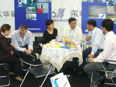 本屆展會上,我公司的展臺占地200余平方米,設計美觀大方。展臺內樣品、資料豐富齊全,整個展臺突出體現了“DONGHUA”自主品牌。同時,展臺占盡地理優勢,設在E1館,進展館第一個展廳即能看到我公司展臺。