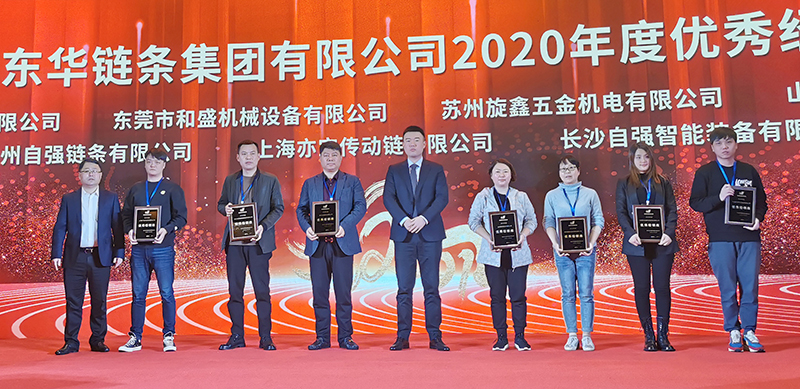 為感謝陪伴東華一路成長(zhǎng),一起拼搏的合作伙伴們,會(huì)議隆重表彰了東華15家優(yōu)秀經(jīng)銷(xiāo)商、5家最佳新秀獎(jiǎng);盾牌公司10家優(yōu)秀經(jīng)銷(xiāo)商,董事長(zhǎng)宣成向獲獎(jiǎng)單位頒發(fā)獎(jiǎng)牌并合影留念。