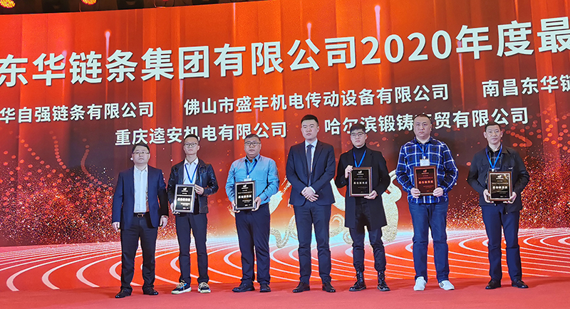 優(yōu)秀經(jīng)銷(xiāo)商代表發(fā)言:鹽城禹強(qiáng)傳動(dòng)科技有限公司總經(jīng)理裴作江發(fā)言;泉州自強(qiáng)鏈條有限公司總經(jīng)理李學(xué)前發(fā)言。