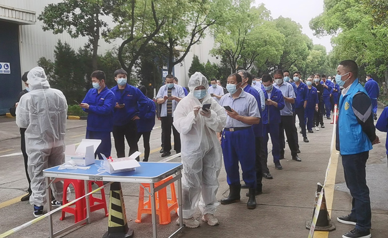 對(duì)內(nèi),公司在各廠區(qū)設(shè)置核酸檢測(cè)點(diǎn),進(jìn)行全員檢測(cè);員工進(jìn)廠及外部來(lái)訪人員一律按防疫要求檢查;?每天對(duì)各廠區(qū)嚴(yán)格消毒成為常態(tài)化舉措;專人統(tǒng)計(jì)員工的體溫、疫苗接種、核酸檢測(cè)、健康碼變色等情況,登記造冊(cè),及時(shí)了解員工情況。
