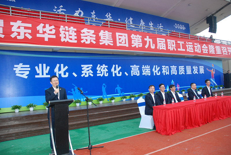 這些年來,東華鏈條集團在各級政府、客戶、合作伙伴的關心和支持下,全體東華人不斷努力,攻堅克難,取得了良好的成績,同時,我們也在關注職工身心健康和全面發(fā)展。近年成立了10個運動俱樂部,吸引不同興趣愛好的職工投入到運動中。今天下起小雨,這為運動會增添了一層含義,就是企業(yè)在發(fā)展中,講天時、地利、人和,但其中天時是我們無法控制的,就像這個市場環(huán)境是我們沒有辦法決定的,但是我們今天仍然克服了各種困難,讓運動會按時舉辦,這是通過這屆運動會向我們全體東華人傳遞一個信心,即無論我們的市場環(huán)境如何變化,我們都要奮發(fā)圖強,勇往直前。希望大家在運動會上秉持更快、更高、更強、更團結的奧林匹克精神,讓東華在這樣一種運動精神的指引下,讓我們把運動精神帶到以后的工作當中,讓我們一起為東華成為世界領先的鏈傳動企業(yè)而奮斗。
