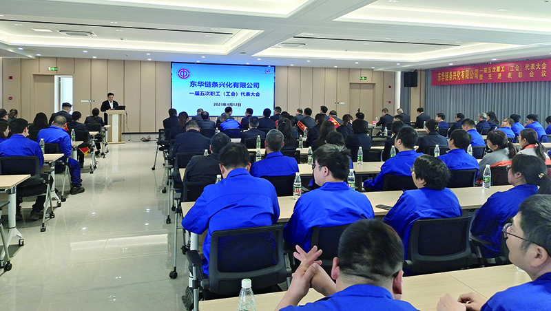 興化公司工會副主席周熊珍作工會工作報告。報告回顧了2022年工會開展的各項工作及取得的成效,計劃了2023年主要工作內容。