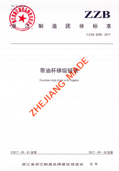 日前,浙江省浙江制造品牌建設促進會印發(fā)“浙促會標發(fā)[2017]43號”文件,批準發(fā)布由浙江藍箭萬幫標準技術(shù)有限公司牽頭組織制訂、杭州東華鏈條集團有限公司負責起草(主導制訂)的“浙江制造”團體標準T/ZZB 0208—2017《帶油杯梯級鏈條》。
