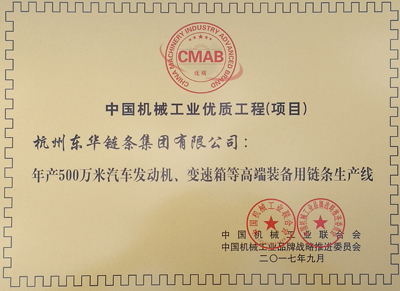 東華“年產(chǎn)500萬米發(fā)動(dòng)機(jī)、變速箱等高端裝備用鏈條生產(chǎn)線”榮獲中國機(jī)械工業(yè)優(yōu)質(zhì)工程(項(xiàng)目)獎(jiǎng)