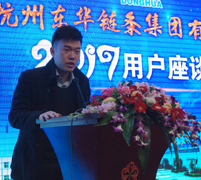 隨后,副董事長宣成講話。他說,今天我們主要講堅持一個目標,三個全覆蓋。一個目標就是東華要成為全球鏈傳動行業第一,包括品牌形象、市場服務能力、產品質量等全方面。三個全覆蓋:一是產品系列全覆蓋。二是市場全覆蓋。三是專業全覆蓋。宣成說,2016年,我們超額完成了既定的目標,離不開大家的努力。2017年挑戰與機遇并存,希望大家一起努力,在2017年更上一層樓,早日實現我們世界鏈傳動第一的目標。