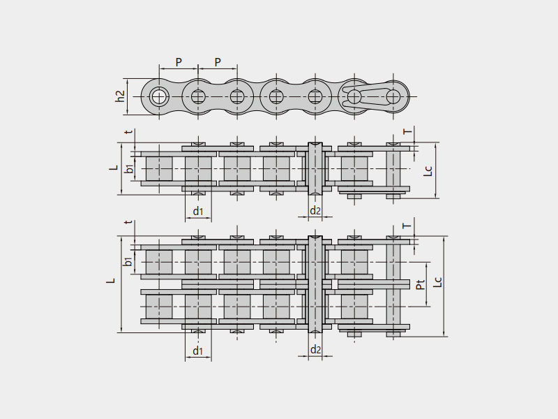 ● 自潤滑滾子鏈符合ISO、ASME/ANSI、DIN、JIS等標準,在尺寸上可與標準鏈條互換。