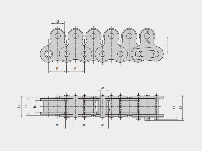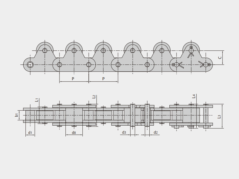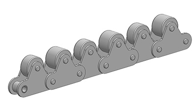 ● 自由流動鏈?zhǔn)侵冈谶\(yùn)行過程中實(shí)現(xiàn)鏈條移動速度不變的情況下,被輸送的物品可按照使用者的要求控制移動節(jié)拍的鏈條;在鏈條運(yùn)行速度一定的情況下,可以根據(jù)具體使用要求調(diào)整輸送物品的速度快慢。主要包括:倍速鏈、帶大滾輪輸送鏈、帶側(cè)滾輪輸送鏈、帶特殊滾輪輸送鏈、帶頂滾輪短節(jié)距輸送鏈、帶頂滾輪雙節(jié)距輸送鏈等。