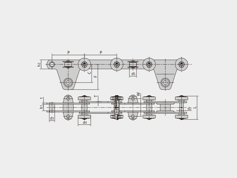 1.擺桿線鏈條:采用滾輪外置式和注油孔結(jié)構(gòu)的設(shè)計(jì),實(shí)現(xiàn)鏈條平穩(wěn)運(yùn)行、延長(zhǎng)使用壽命;