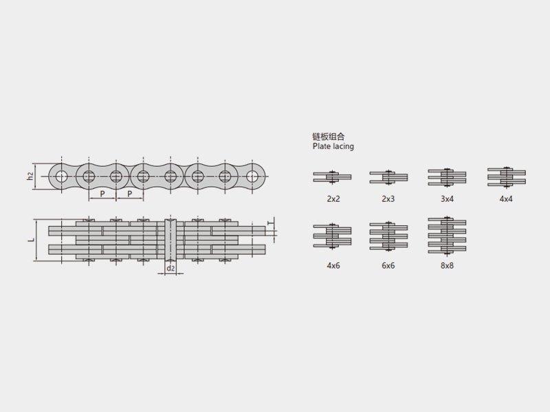 ● 板式鏈符合ISO 4347、ASME B29.8M、JIS B 1804等標準,主要有LH(BL)系列、LL系列和AL系列,以及由標準系列衍生的其它鏈號的板式鏈,節距范圍5.94mm~76.2mm,可根據主機用戶的特殊要求進行非標定制,并可配套供應各種類型連接環(端接頭)、特殊連接件等附件;